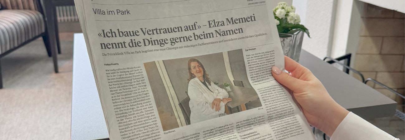 Mit viel Fachkompetenz und Empathie widmet sich Fachärztin Elza Memeti ihren Patientinnen und Patienten – das zeigt der aktuelle Bericht im Zofinger Tagblatt. Die erfahrene Chirurgin, die seit September 2024 bei uns in der "Villa" praktiziert, spricht darin über ihre Leidenschaft für die Chirurgie und ihr Engagement für eine ganzheitliche, einfühlsame Behandlung.