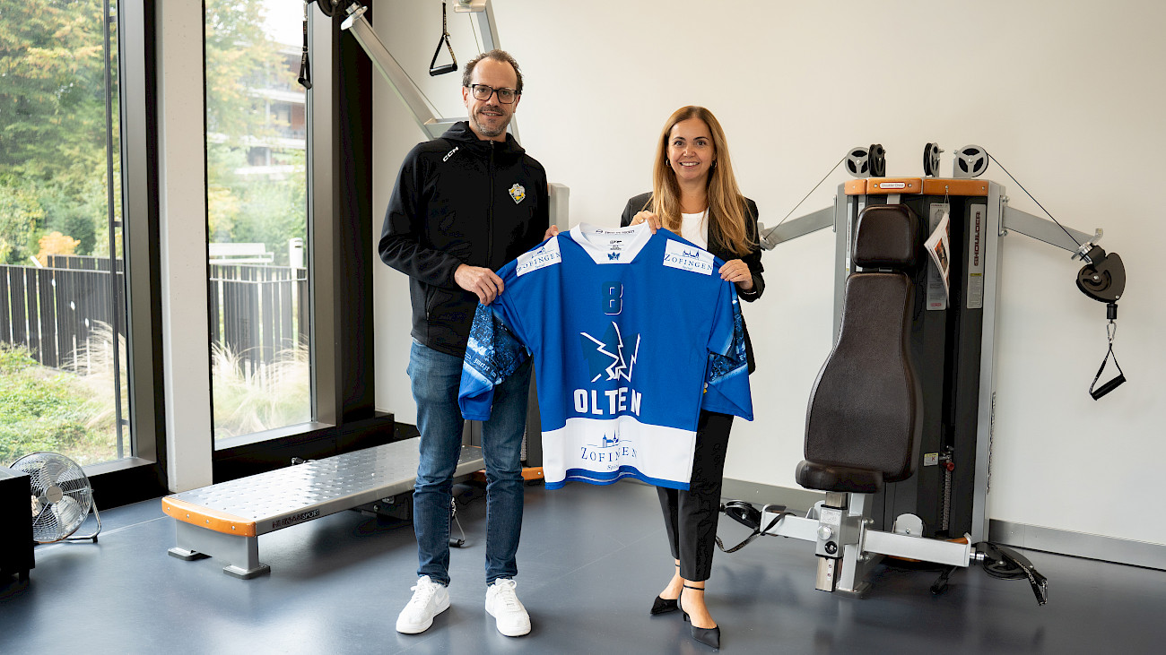 Im Rahmen eines Fotoshootings präsentierten Direktorin Olivera Ceric und EHCO-CEO Christian Roth das neue Trikot des EHC Olten, welches jeweils beim Einwärmen vor dem Spiel getragen wird. Das neue Logo auf dem Trikot steht für ein sichtbares Zeichen der fortgesetzten und gewachsenen Zusammenarbeit.