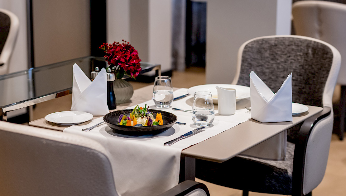 Während der Sommerzeit geniessen Sie unsere ruhige Terrasse. Patientinnen und Patienten sind eingeladen, während des gesamten Aufenthalts im Bistro zu essen, wo sie gerne auch Gäste empfangen können.