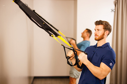 Die bestens ausgestatteten Räumlichkeiten inklusive Fitnessraum ermöglichen eine vollumfängliche Rehabilitation. Die Privatsphäre ist dabei dank separaten Behandlungsräumen jederzeit gewährleistet.
