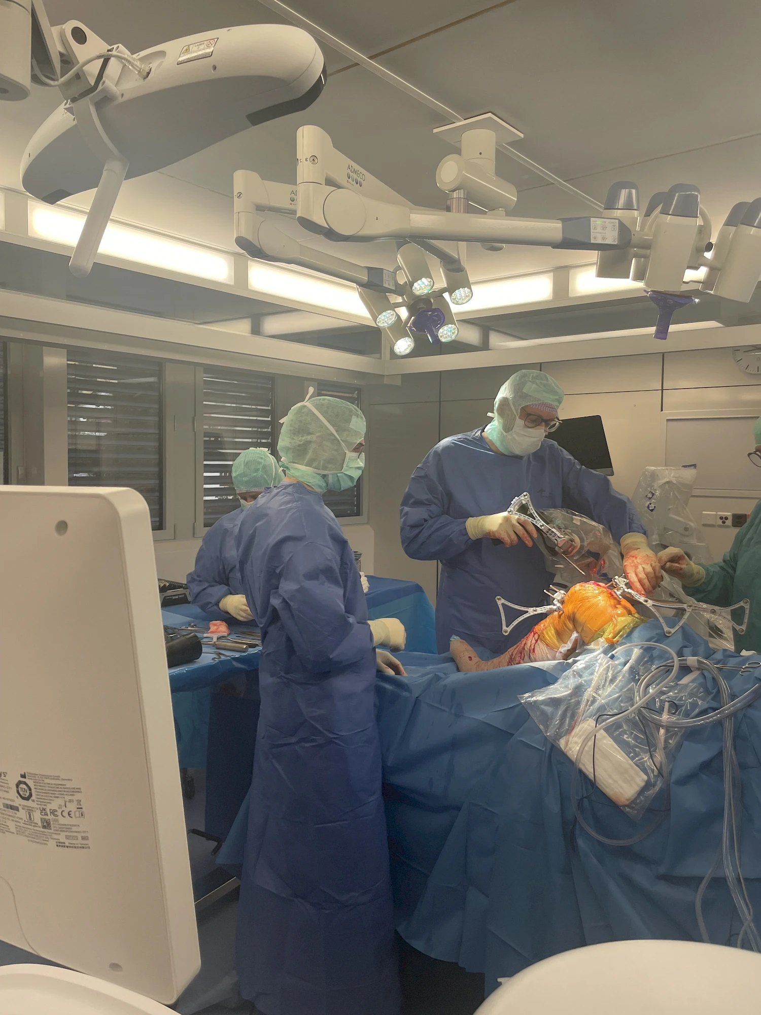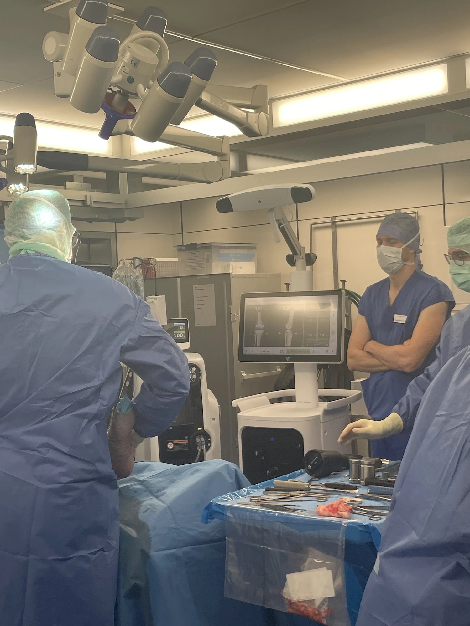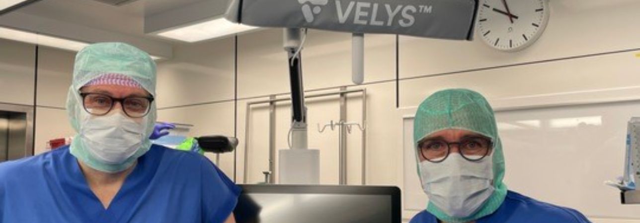 VELYS™ Robotic-Assisted Solutions (VRAS) helps the surgical team to implant knee prostheses as accurately as possible: at the start of the operation, data is collected that the robot uses to determine the exact size, range of motion and stability of the knee joint. During the operation, the robot enables the surgeon to make very precise bone cuts based on the data generated, as well as to simulate and adjust the function of the knee prosthesis on the computer. The implantation is only carried out after the robot has simulated ideal stability and functionality of the knee prosthesis.