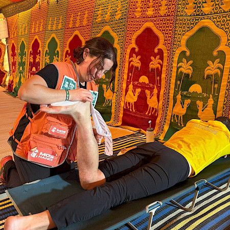 The Marathon des Sables Atlantic Coast is a unique experience: exhausted faces turned toward the ocean, shared silences in the desert and simple yet essential gestures of care. It is an adventure where one provides care, but also receives as much as one gives.