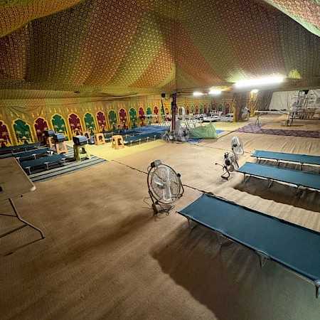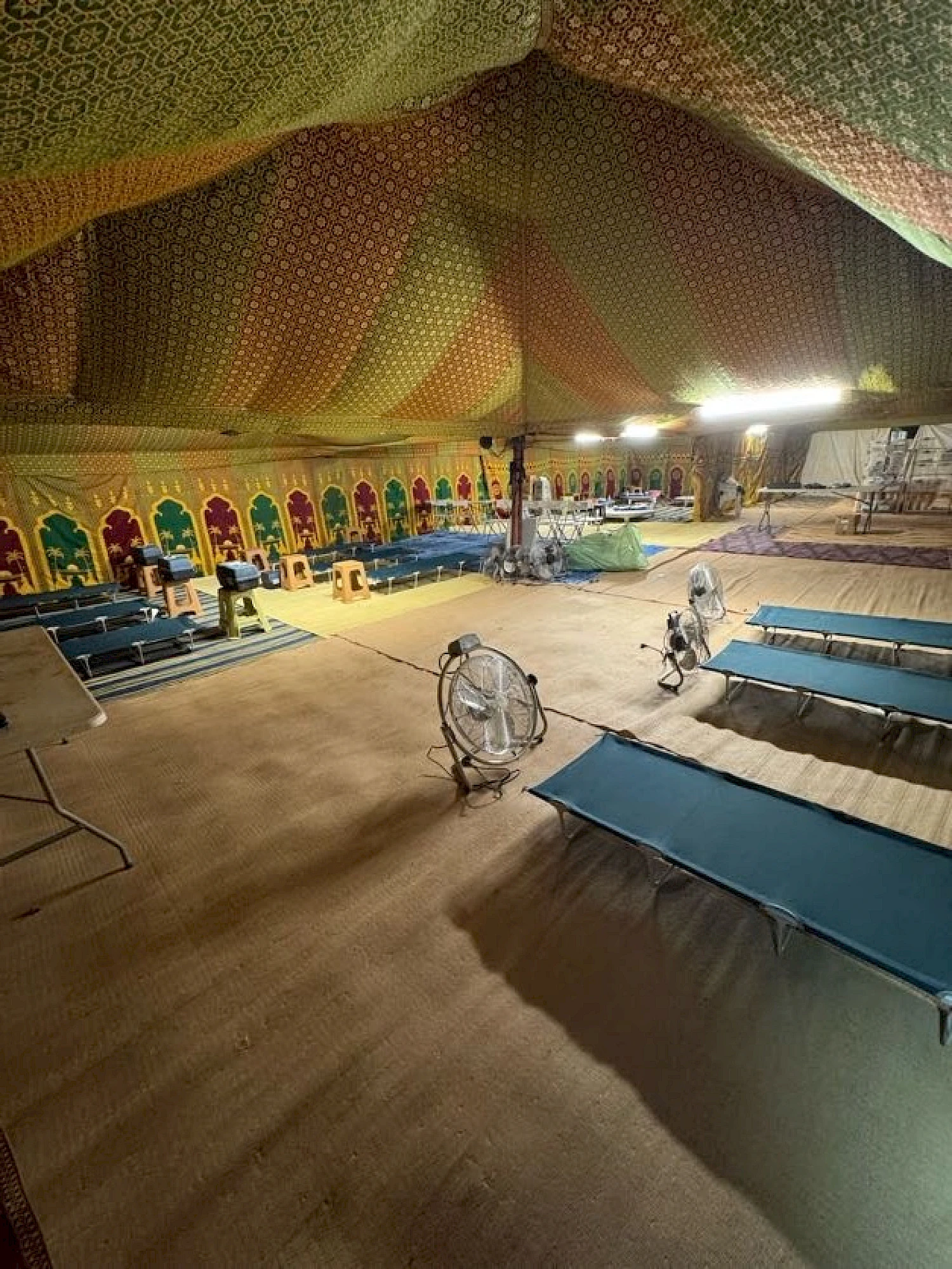 Ahead of the participants’ arrival at the bivouac, a team of eight medical volunteers – the “orange vests” – including Guillaume Droz-Bartholet, arrived on site to set up the field clinic: