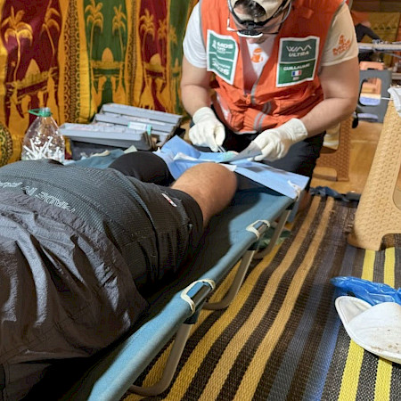 Before entering the desert, runners were welcomed at a hotel on the Moroccan coast for pre-race consultations, prevention advice and preparation of the medical equipment.
