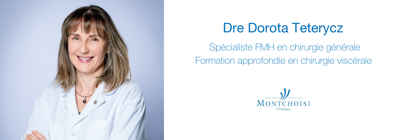Après plusieurs années de formation et pratique dans les hôpitaux de Suisse romande, la Dre Teterycz obtient son titre de spécialiste en chirurgie générale en 2010. Elle poursuit ensuite sa carrière en Belgique où elle enrichit ses compétences pendant plusieurs années avant de revenir en Suisse pour diriger l’unité de chirurgie viscérale du Centre Hospitalier du Valais Romand à Sion.