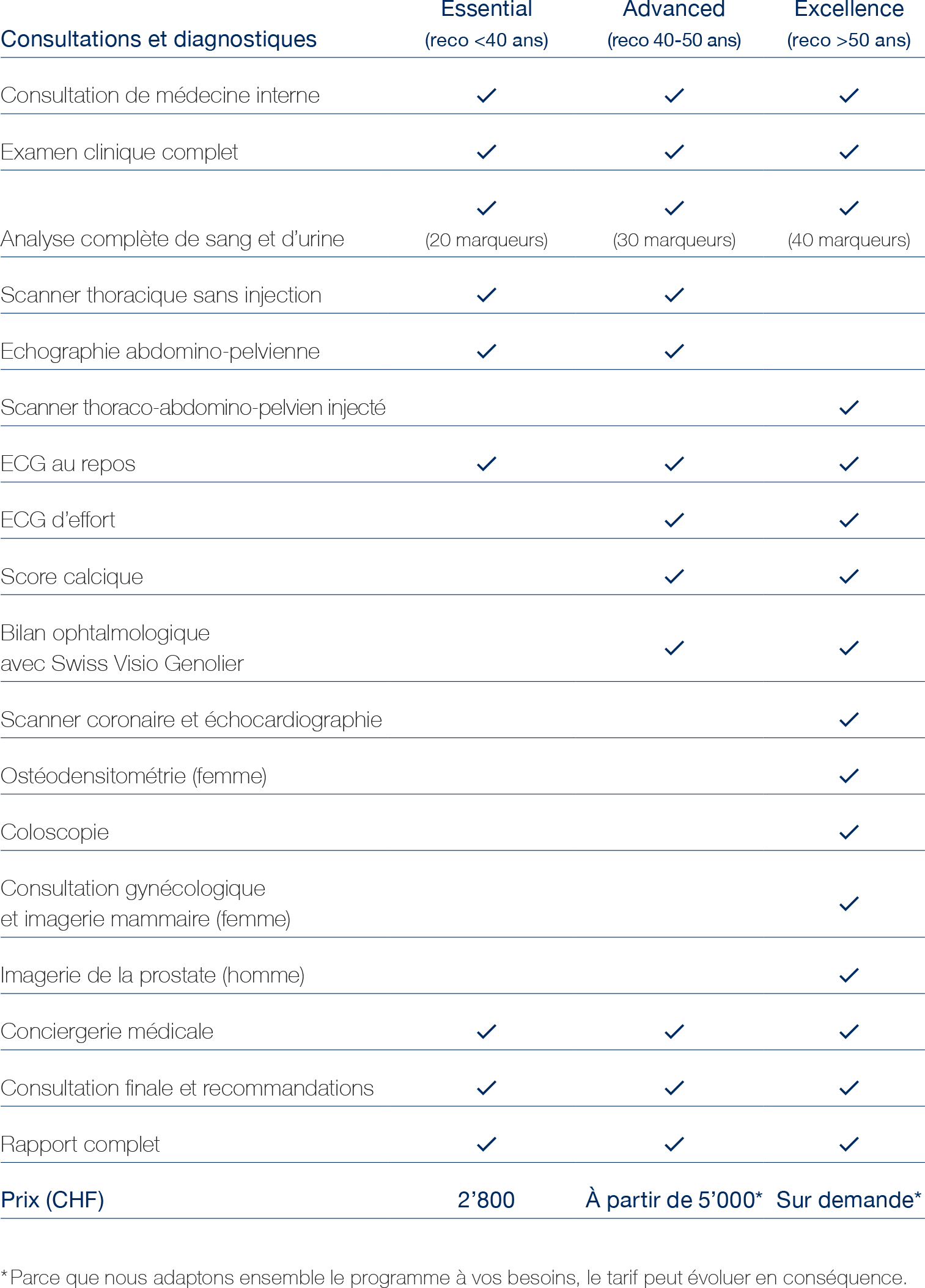 - Une évaluation personnalisée selon votre âge, vos antécédents et vos facteurs de risque.