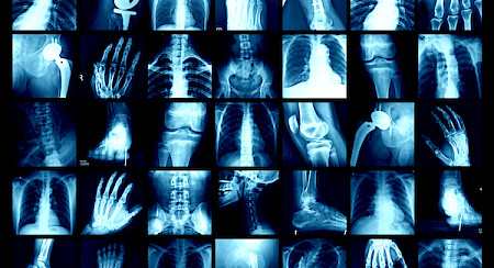La radiologie standardou radiographie est l’étude des articulations au niveau osseux. Examen de première intention, la radiographie permet de visualiser des parties spécifiques du corps humain (os et certains organes) et décèle les fractures et l’arthrose. Elle utilise des rayons X (onde à fréquence élevée), qui - en traversant le corps - sont atténués par les différentes structures (p. ex. les os, les tissus mous). Sur la radiographie, les os apparaîtront en blanc, tandis que les tissus mous s’afficheront dans des tons gris.