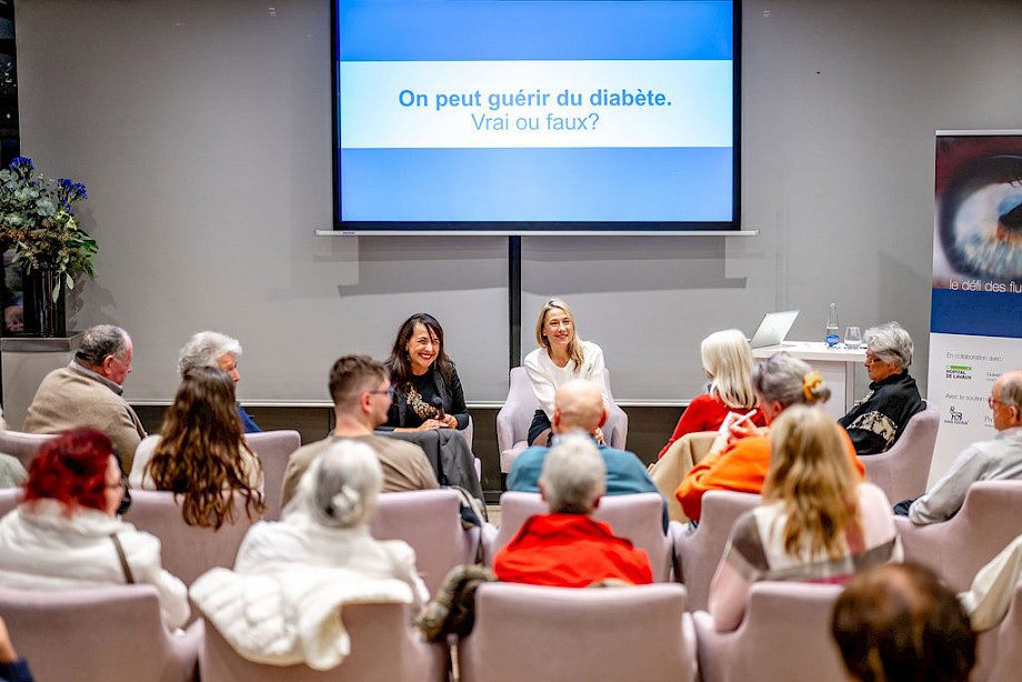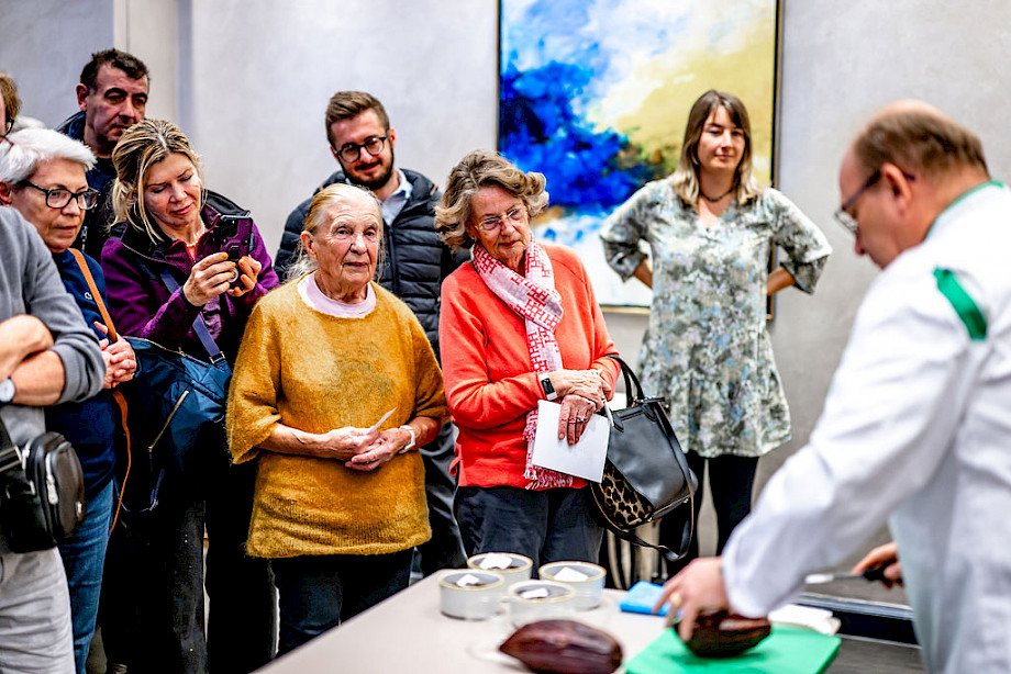 Opo la conferenza, gli ospiti hanno avuto l'opportunità di partecipare a un laboratorio sul tema del cioccolato, condotto dal cioccolatiere Laurent Buet e dalla dietista Magali Andrey. L'obiettivo del workshop era dimostrare che il diabete non è sinonimo di privazione o di rinuncia al piacere di mangiare bene, ma piuttosto di adattamento.